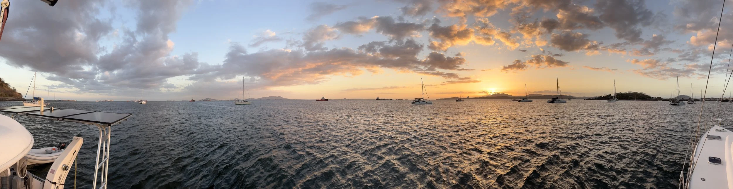 We anchored in the horrendously rolly La Playita Anchorage, just outside Panama City, where the pilot boats race in and out at speed all night. After anchoring, we headed ashore for a celebratory pizza. It felt pretty surreal to think that just two days earlier we were in the Caribbean, and now we were sitting in Panama City looking out at the Pacific.